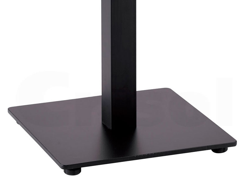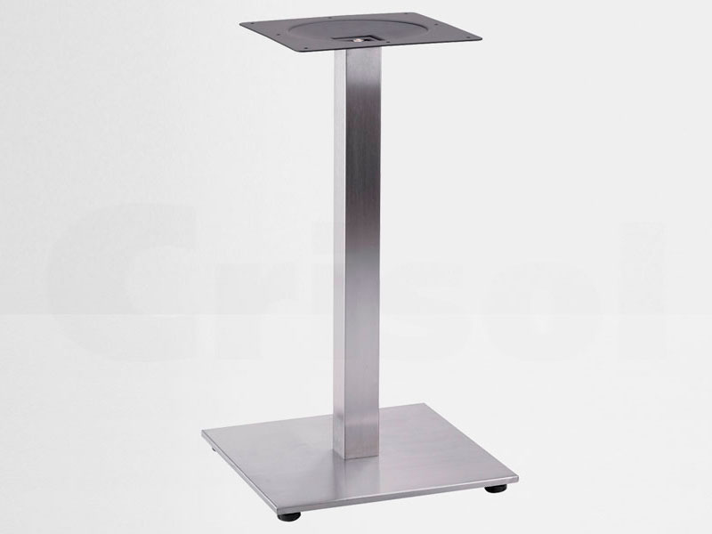 Pie normal o alto. Inox 304. Tubo: 6x6 cm. Altura: 72 cm o 108 cm. Para interior y exterior. Apto para encimeras de 70 x 70 cm, 80 x 80 cm, Ø70 cm y Ø80 cm. Base: 40 x 40 cm.