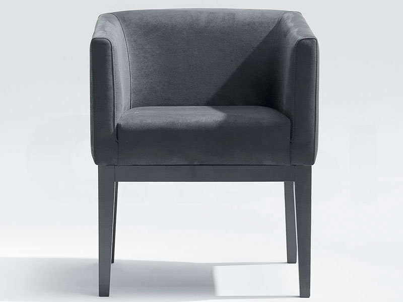 Butaca (ancho: 60 cm). Acabados exteriores tapizados según carta y estructura en madera de haya. Patas de madera de haya de primera calidad o metálicas.