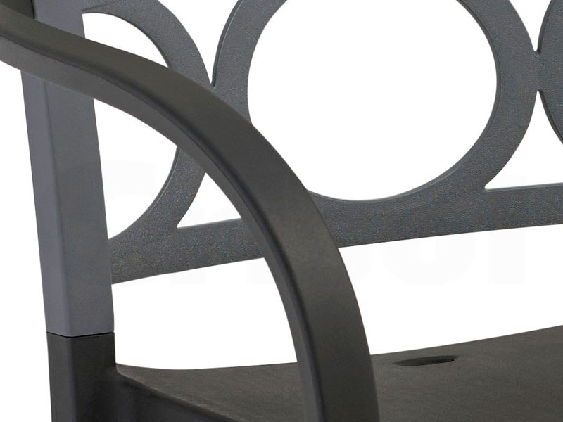 Sillón de polipropileno reforzado con fibra de vidrio. Resistente rayos UV. Apilable. Altura: 82 cm. Anchura: 60,5 cm. Fondo: 49 cm.