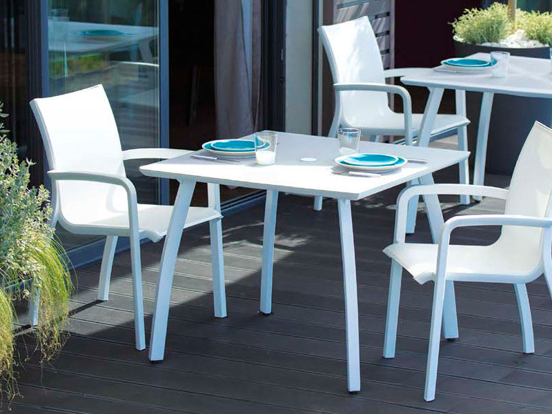 La mesa baja SUNSET de 50 x 50 cm es el accesorio indespensable para los ambientes de piscina o balcones. Fabricada en aluminio y pintada en polvo de poliester.