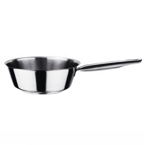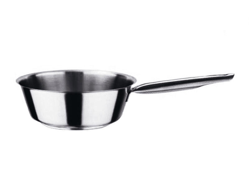 Cazo cónico. Cuerpo en acero inoxidable 18/10 con triple fondo difusor (inox-alu-inox). Pulido satinado interior y exterior uniforme. La tapa se puede comprar a parte.