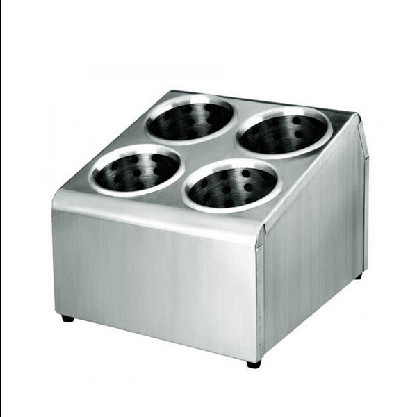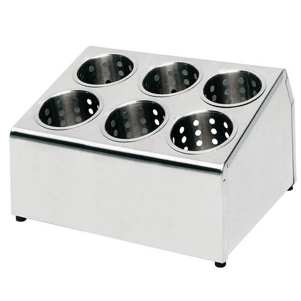 Cubertero en acero inoxidable con 4 o 6 huecos para vasos escurridores. Los vasos disponen de agujeros para facilitar el secado. Dispone de tacos para evitar el contacto con cualquier superficie.