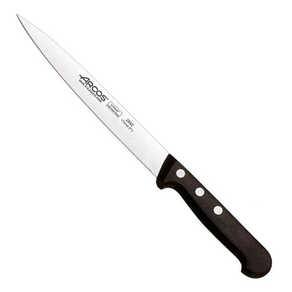 Hoja ancha de 2 mm de grosor quepermite filetear piezas grandes de carne con gran precisión, comodidad, seguridad y rapidez. Fabricada en acero NITRUM,