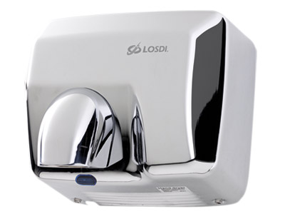 Secamanos aire caliente antivandálico. Óptico. 2.500 W. Velocidad del aire: 108 km/h. Acabado brillo. Acero 304. Medidas 26,7 x 20,3 x h24,1 cm.