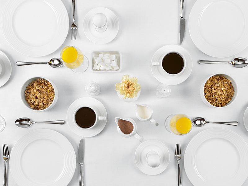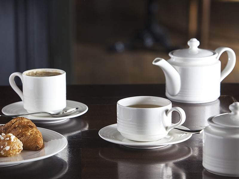 Extensa colección de piezas para el servicio de té y café. El apilamiento de todas sus piezas ofrece la máxima funcionalidad.