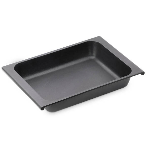 Bandeja horno Efficient con tapa y protectores de asas de silicona. Fabricado en aluminio fundido indeformable de 6 mm de espesor, con un fondo difusor de dos capas de acero inoxidable. Recubrimiento interior antiaderente Teflon Platinum Plus y protección antiadherente en todo el exterior para una limpieza más fácil y perfecta.