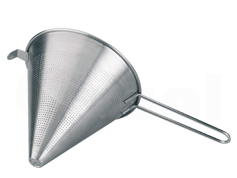 Colador cónico fabricado en acero inoxidable 18/10 con mango de varilla. Adecuado para el procesamiento de alimentos. Es apto para el lavavajillas.