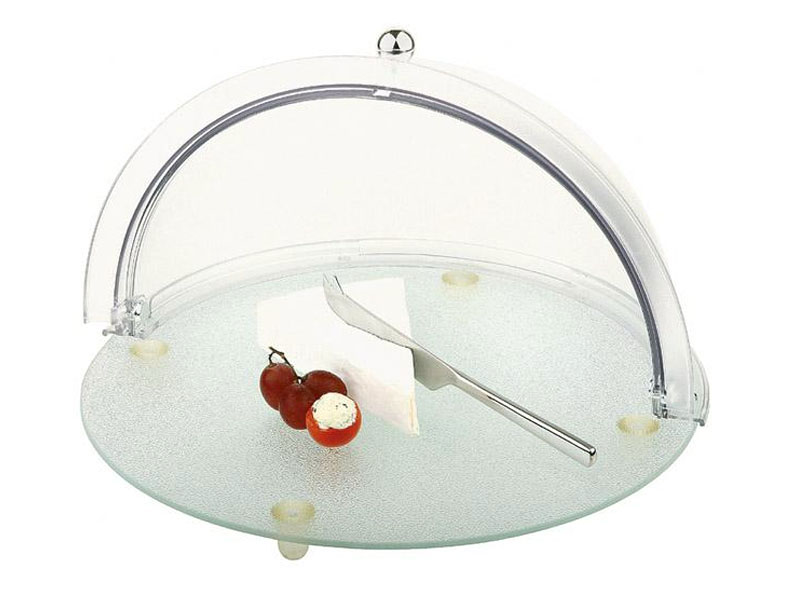 Campana redonda para cestas buffet. Fabricada en SAN. Apertura 90º. Pomo cromado.