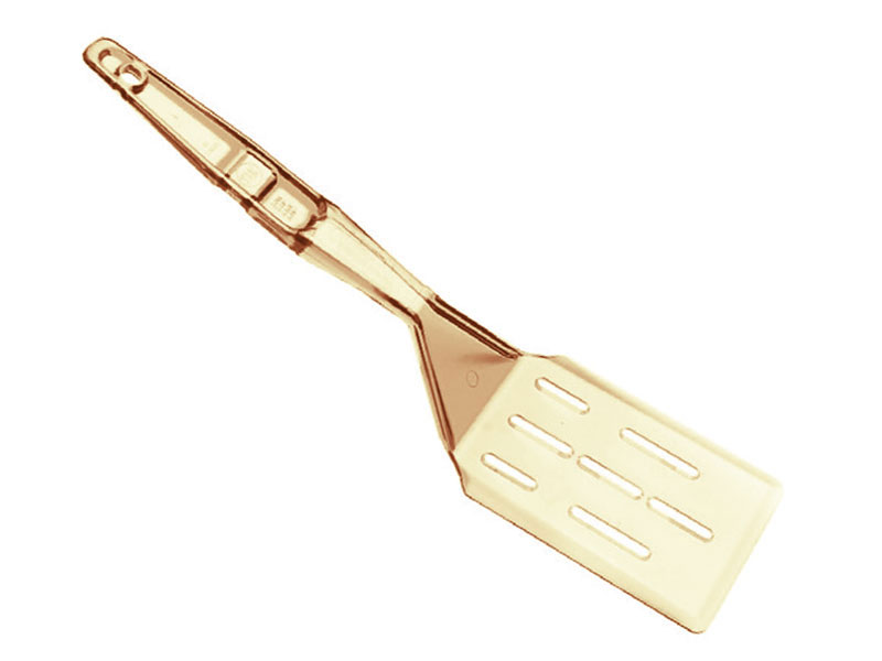 Espátula perforada Camtensils. Fabricada en policarbonato resistente a temperaturas de -40ºC a 190ºC. Color ámbar.