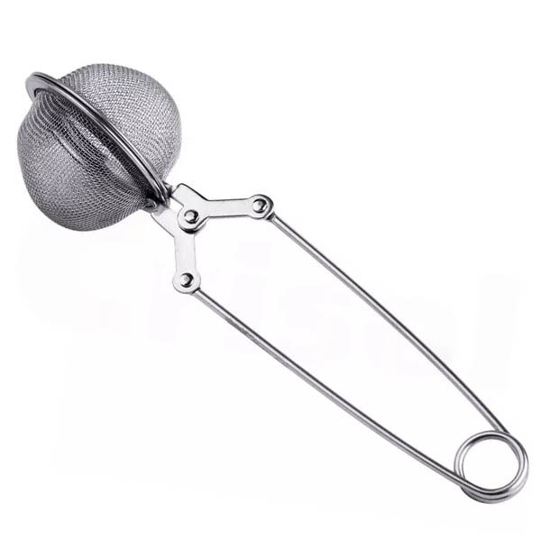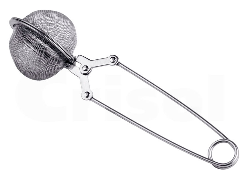 Pinza colador bola té. Acero Inoxacabado efecto satinado, con malla fina y bisagra.