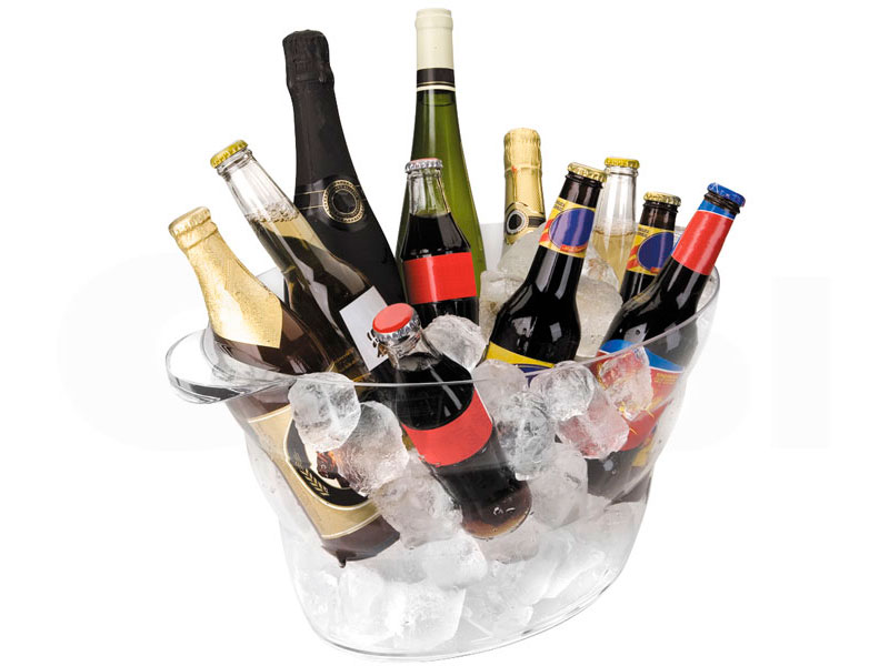 Barreño fabricado en acrílico. Para mantener a una temperatura perfecta para el consumo varias botellas a la vez. Con dos asas para facilitar su transporte.