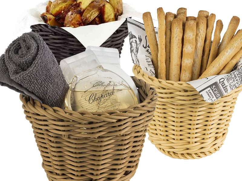 Panera redonda Profi Line. Polipropileno trenzado a mano. Muy resistentes, apilables y aptas para el lavavajillas. Acabado mate que le da aspecto de ratán natural.