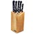 Juego de 4 cuchillos y macheta Universal con tijeras y taco de madera de pino. Caja regalo.