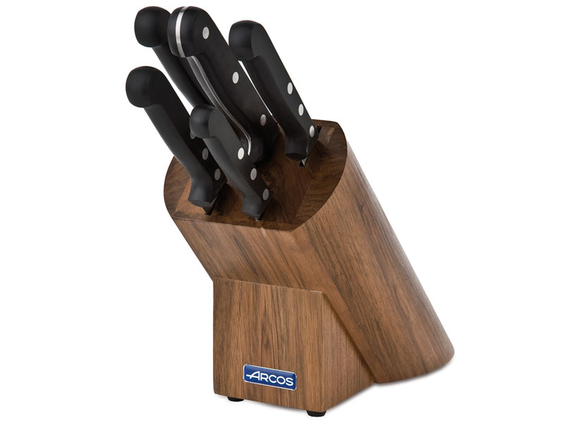 Juego de 5 cuchillos profesionales Serie Universal con taco de madera de nogal. Caja para regalo.