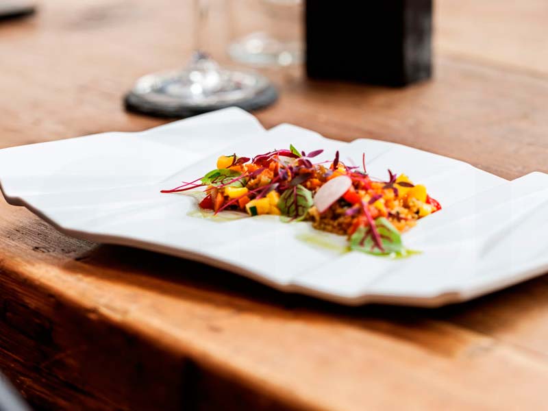 Las formas de la colección Mazza se prestan perfectamente al juego de las presentaciónes culinarias variadas y audaces.