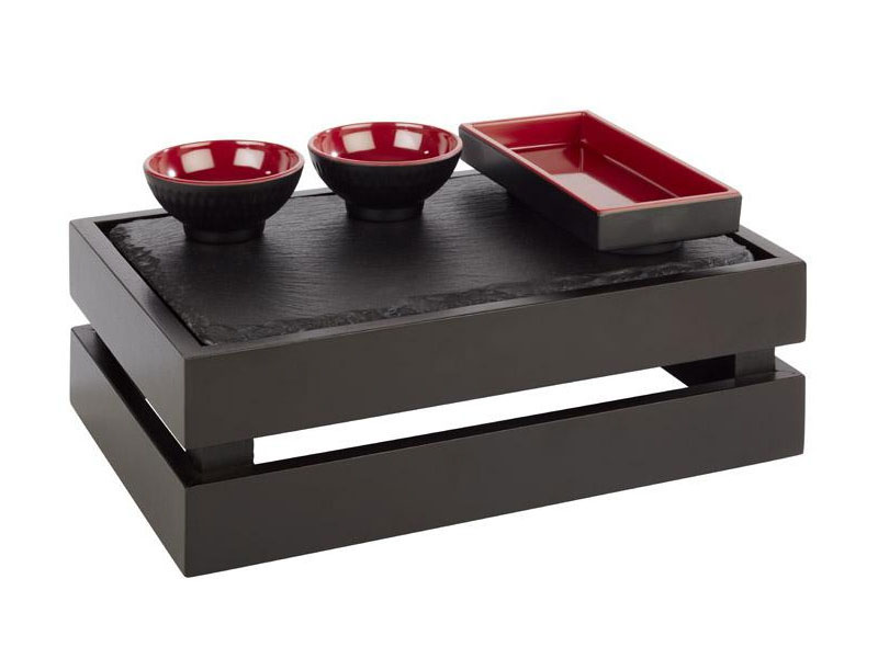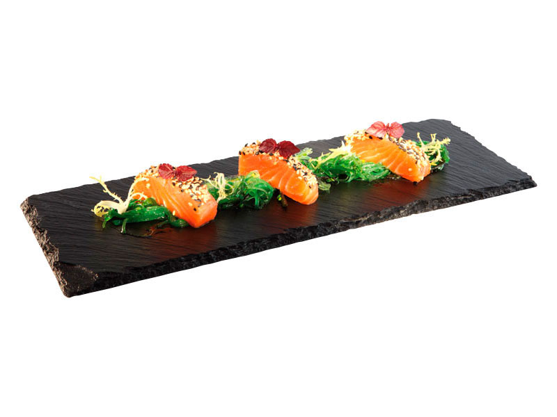 Bandejas rectangulares de pizarra natural con pies antideslizantes. Grosor de 6 a 9 mm.