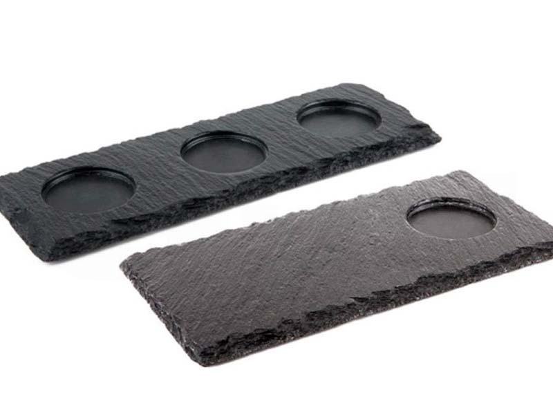 Bandejas rectangulares de pizarra natural con pies antideslizantes. Grosor de 6 a 9 mm.