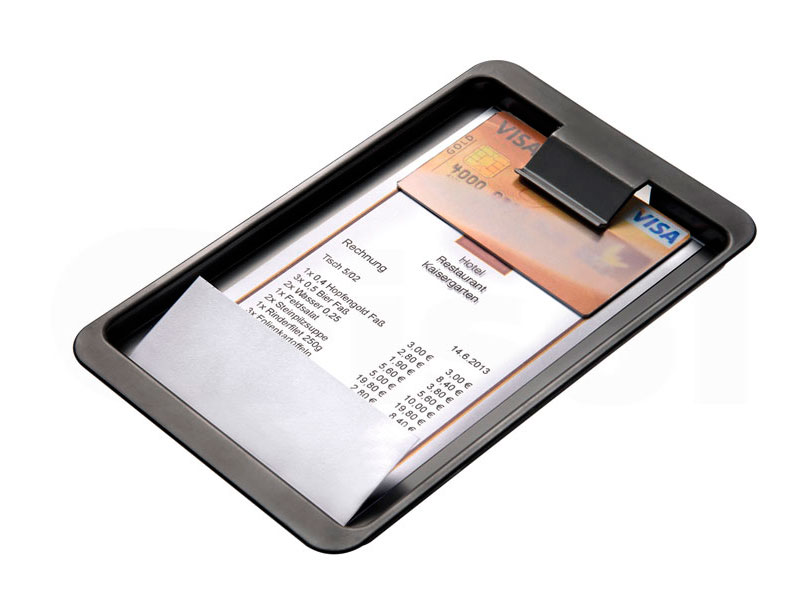 23 x 12 x 3 cm. Caja nota restaurante en madera de haya barnizada, forrada en terciopelo interior. Colores Cerezo, Wengue y Naranja.
