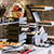 Soporte metálico con boles de cristal (Ø23cm y 2,5 litros) y tapas de policarbonato con bisagra.