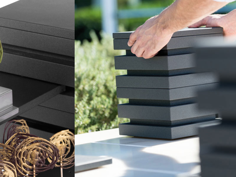 Línea Buffet Cubic: Cubos estantes y bandejas que forman composiciones modulares, cómodas y funcionales. Original y versátil.