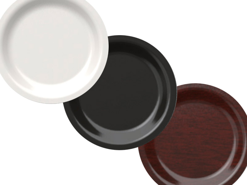 Bandejas estratificadas con superficies melamínicas, prensadas a altas temperaturas.