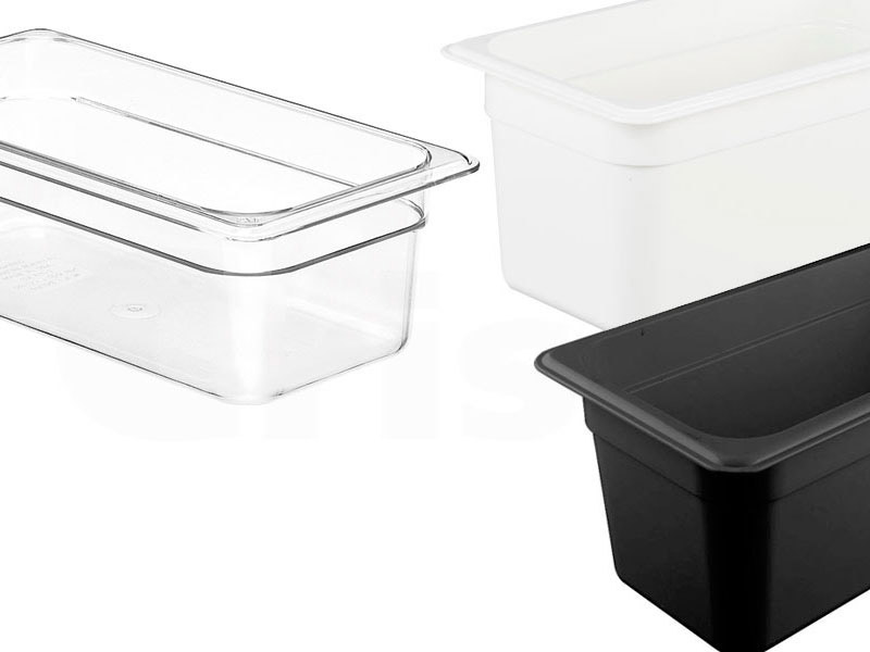 Cubeta PC GN 1/3 (176 x 325 mm). Cubetas Gastronorm de policarbonato. En negro, blanco y transparente. Profundidades en mm.