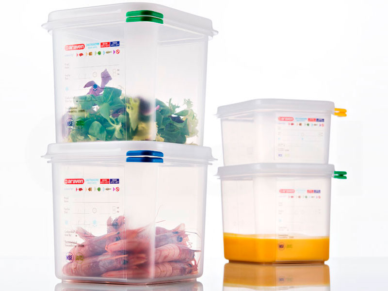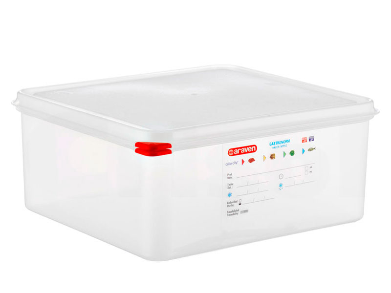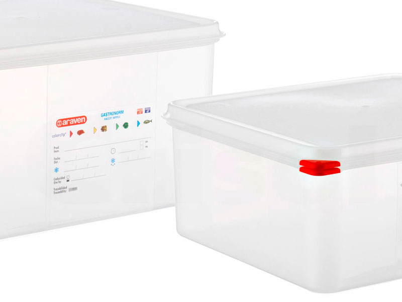Herméticos GastroNorm de polipropileno. Etiqueta permanente. Sistema colorclip. Tapas herméticas de doble cierre.
