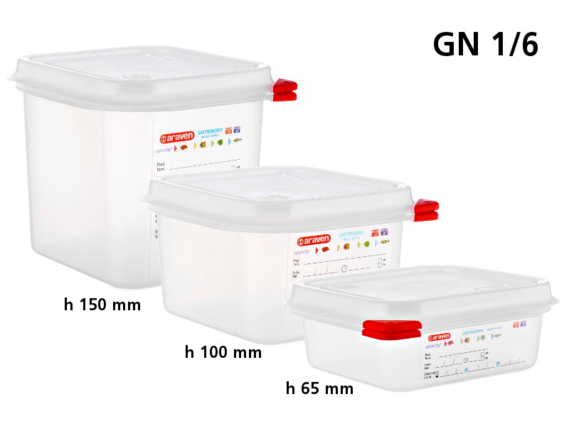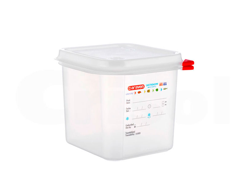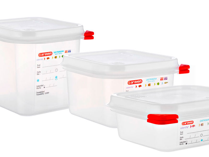 Herméticos GastroNorm de polipropileno. Etiqueta permanente. Sistema colorclip. Tapas herméticas de doble cierre.