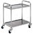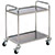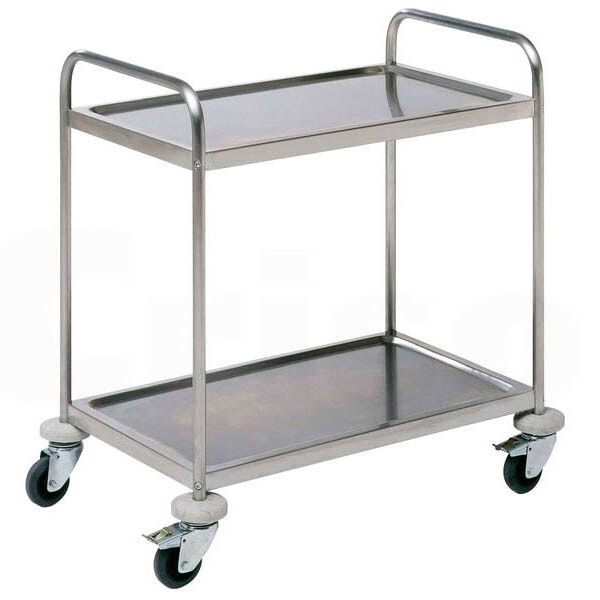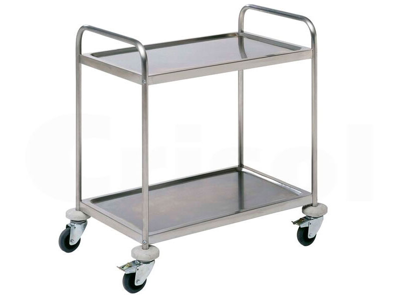 Carro servicio profesional 2 niveles para transporte en comedor de hotel, restaurante o colectividades.. Estructura tubular de acero inoxidable de 1,5 mm espesor. Estantes insonorizados y soldados a la estructura. Ruedas giratorias insonoras 125 mm, dos con freno. Carga máxima 80 Kg. por estante.