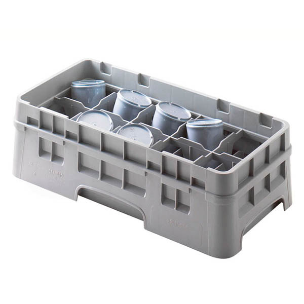 Media cesta. Capacidad: 8 huecos de 111 x 111 mm/hueco. Inclinación única que drena el agua de las bases de las tazas.