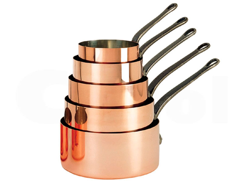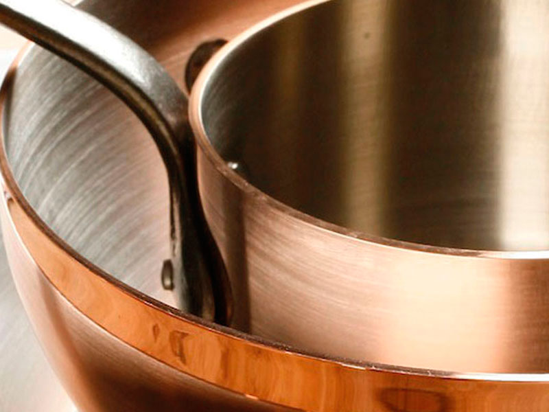 Gama First Classe 90% Cobre, 10% Inox. Espesor 2 mm. Mangos de hierro fundido.