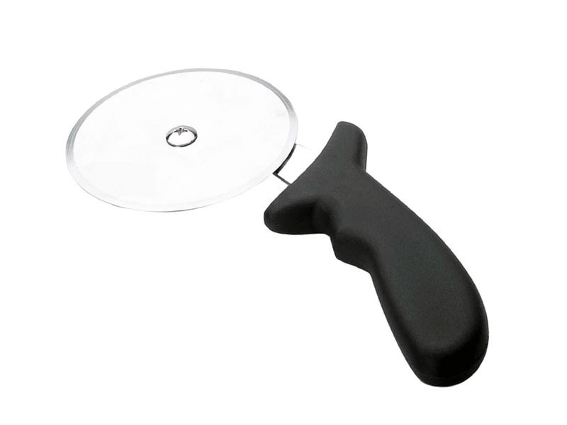 Cortapizzas económico. Mango de polipropileno. Hoja de acero inoxidable. Cuchilla de 10 cm de diámetro.
