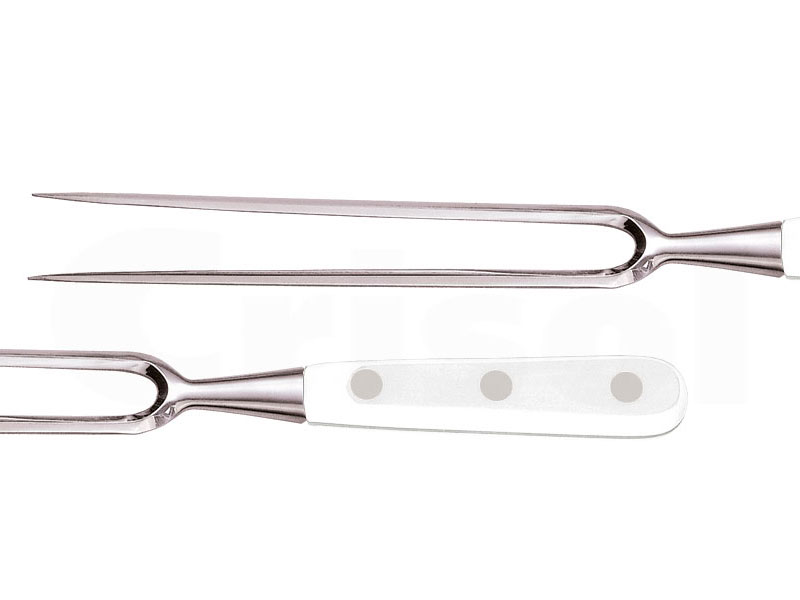 Versión de la célebre serie Riviera con una personalísima línea de mangos blancos.Hojas: Acero inoxidable forjado Nitrum®. Mangos: Polioximetileno (POM).
