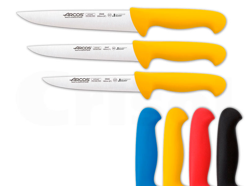 Para profesionales que requieran de un uso prolongado. El color diferencia los alimentos que se cortan.Hojas: Acero inoxidable Nitrum®. Mangos: Polipropileno (PP) inyectado.