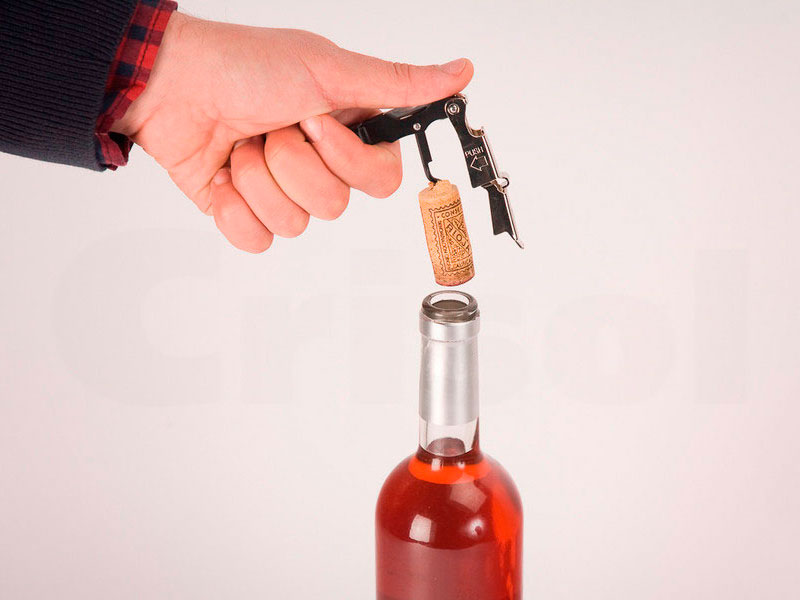 Doble impulso. Este sacacorchos dispone de tres herramientas fundamentales. Gracias a su pico podrás abrir las botellas con chapa. Su pequeña navaja es ideal para decapsular botellas sin riesgo alguno. Con la espiral y los soportes podrás hacer impulso y descorchar cualquier tipo de botella.