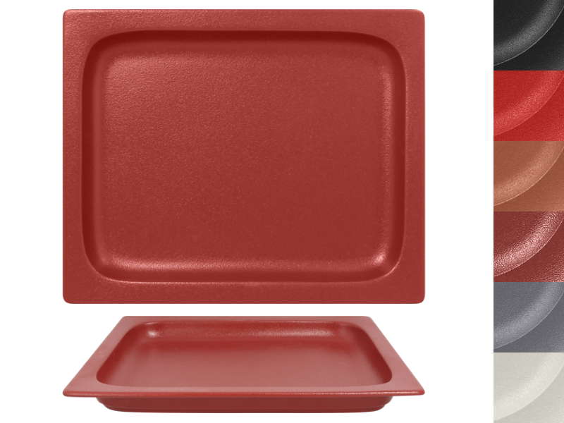 Fuente 2,2 L - GN 1/1 - 530 x 325 x h20 mm. Disponible en 6 colores dentro de la colección NEOFUSIÓN. Inspirado en materiales minerales.