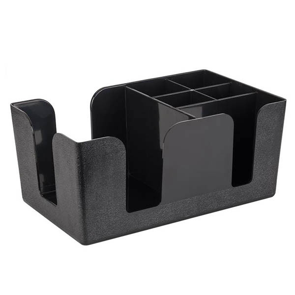 Organizador para pajitas, cucharillas, servilletas, etc. Fabricado en plástico ABS negro. Pajitas y servilletas no incluidas.