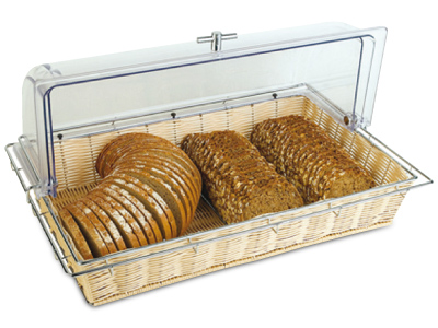 Campana gastronorm rolltop de policarbonato, con mango cromado/dorado.
