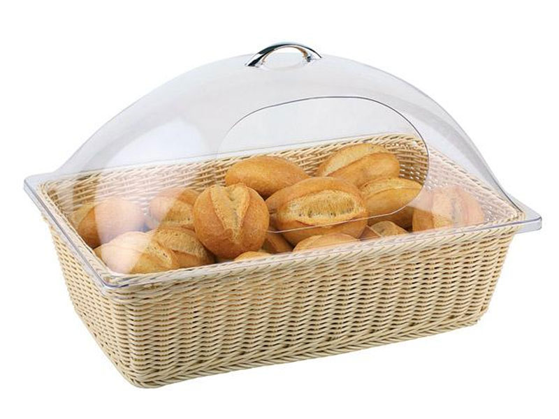 Polipropileno trenzada a mano. Resistente al agua. Apilable. Reforzada con marco cromado. Capacidad 30-40 panecillos.