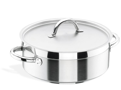 SERIE CHEF LUXE. Inox. 18/10. Borde extra-grueso reforzado. Acabado interior y exterior satinado. Reborde pulido espejo. Mangos y asas soldadas de tubo inox 18/10 hermético, anticalentamiento y ergonómicos. Fondo termodifusor sándwich (inoxidable-aluminio-inoxidable) y fondo capsulado. Fácil limpieza. Certificación alimentaría europea: RGS 3901841/SS.