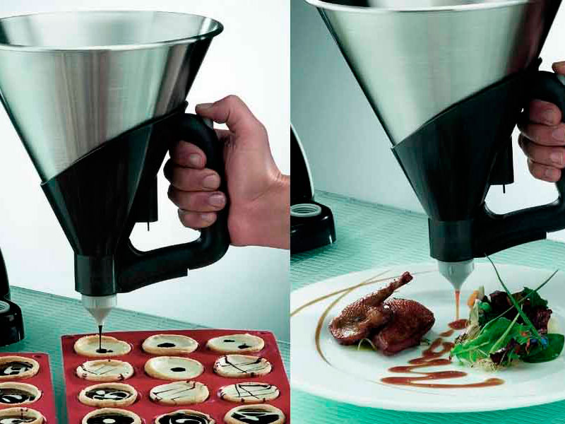 Contenedor de Acero Inox 18/10. Base de gran estabilidad, desmontaje rápido y fácil limpieza. Incluye boquillas de Ø 4, 6 y 8 mm.