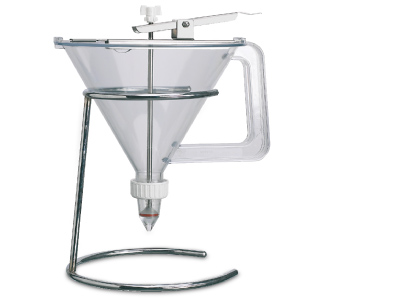 Embudo automático de policarbonato. Se entrega con soporte cromado. Modelo 0,75 L incluye boquilla de Ø 4 mm.