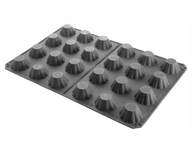 Molde de silicona diseñado para elaborar 24 briochettes. El molde, con una altura de 3,7 cm, mide de 60 x 40 cm y puede dividirse en 2 moldes de 30 x 20 cm gracias a su diseño simétrico. Ideal para congelador, horno y lavavajillas.