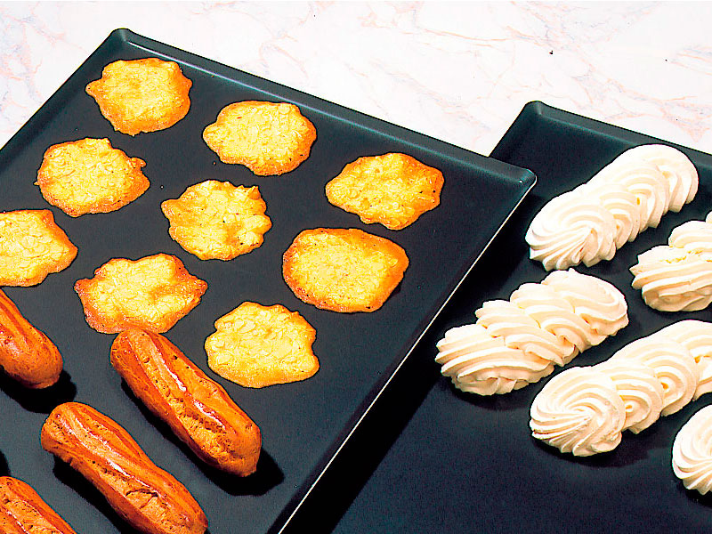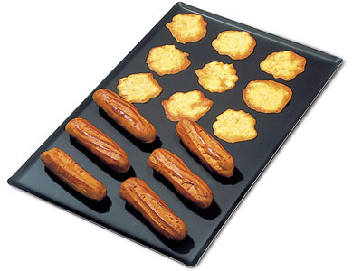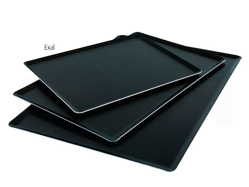 Aluminio 17/10 inoxidable con los bordes inclinados. Ahorra al no usar papel de cocción. Fácil limpieza.