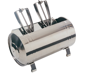 Embudo automático inox. Incluye 2 tubos de salida Ø 3 y 6 mm intercambiables y una salida de Ø 8 mm sin tubo.