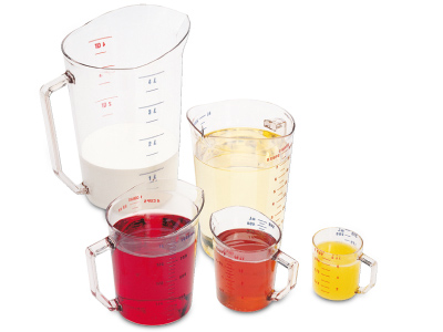 Juego de 3 jarras de medidas triangulares transparentes de 25, 50 y 100 cl.