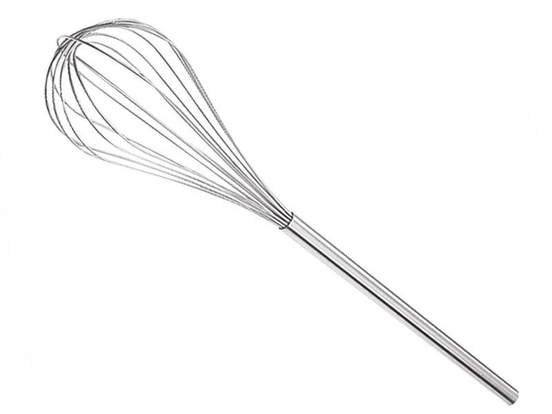 Batidor de varillas de gran tamaño para mezclar líquidos o preparar salsas en ollas de gran profundidad. Fabricado en acero inoxidable. 12 varillas. Grosor varillas 3 mm.