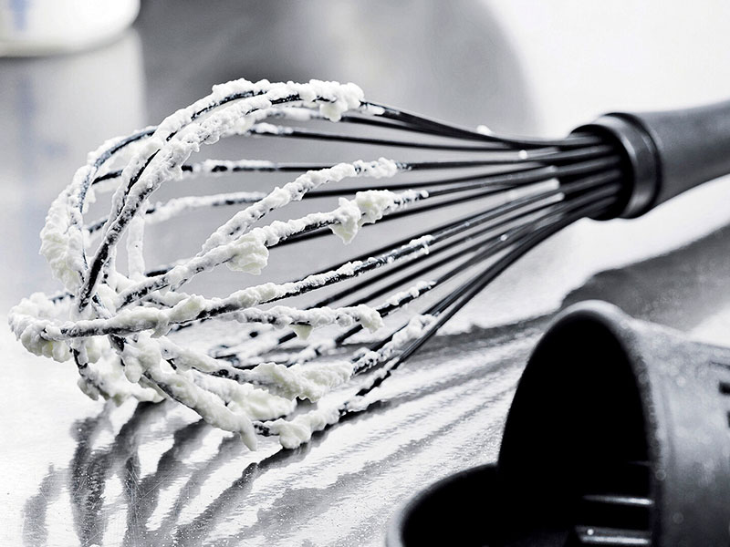 Batidor de 8 varillas de acero inoxidable 18/10 recubiertos de silicona. Serie 12900 Pa.Plus. El mango ergonómico está fabricado en manterial compuesto (poliamida optimizado) y es resistente a temperaturas de hasta 230ºC. El grosor del acero inoxidable de las varillas evita el rasgado y retorcimiento de las mismas. Apto para lavavajillas. Diseñado para una mezcla y aireación completas.