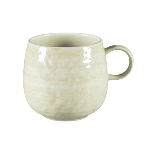 Color "vainilla" de la serie Krush. Una porcelana única por la forma en la que combina dos fuerzas opuestas. Las formas puras y rústicas se combinan con unos diseños pintados a mano en suaves colores tipo acuarela.