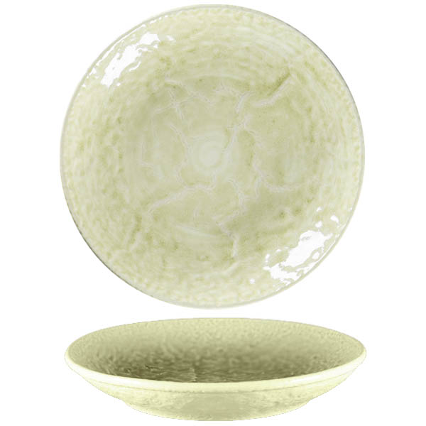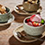Color "celadón" (verde pálido) de la serie Krush. Una porcelana única por la forma en la que combina dos fuerzas opuestas. Las formas puras y rústicas se combinan con unos diseños pintados a mano en suaves colores tipo acuarela.